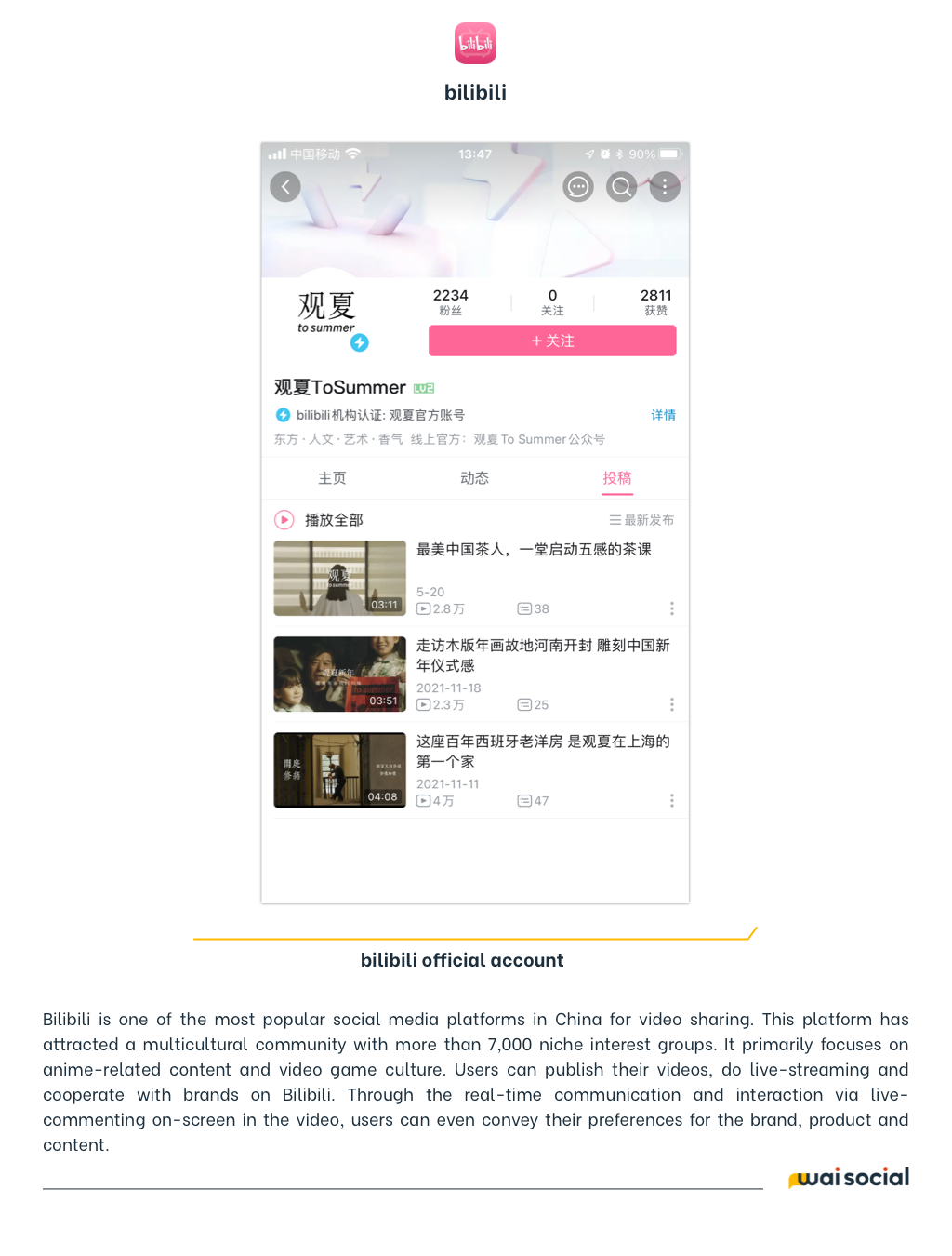 Weibo (53k followers), WeChat with Channels & Mini Program Ecommerce Shop, RED with Ecommerce Shop (135k followers), Douyin with Ecommerce Shop (25k followers), Bilibili (2.2k followers)